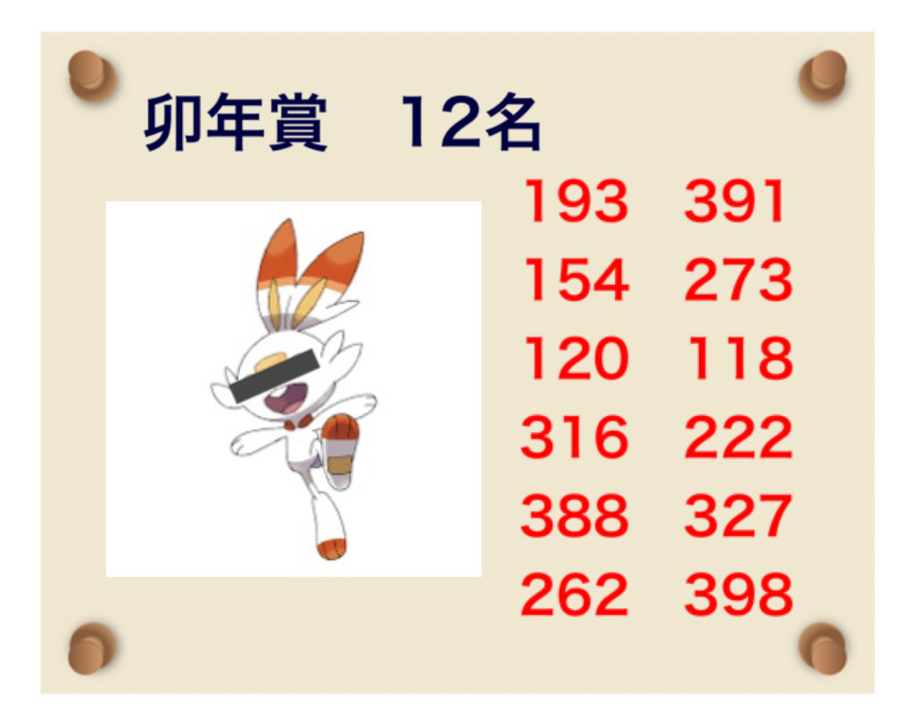 昨年に引き続き卯年賞はお楽しみにという事で☆
