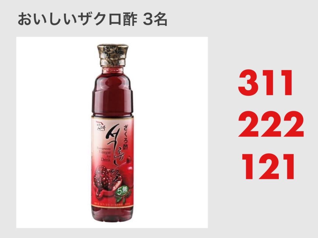 それでは各賞の当選番号は以下の赤字3桁の数字をご確認ください。